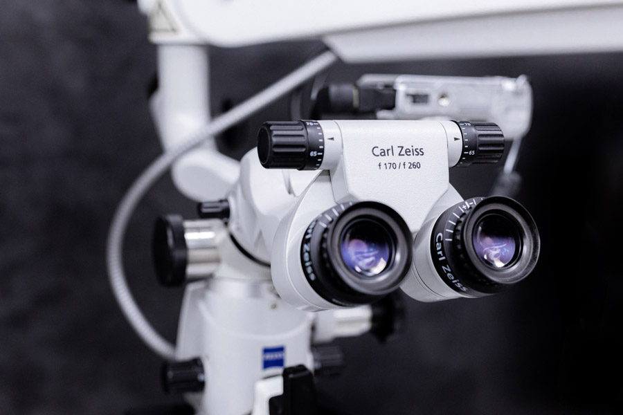 Mikroskop stomatologiczny to narzędzie kluczowe w pracy każdego stomatologa. Najczęściej stosuje się go w leczeniu endodontycznym (kanałowym), ale także w trakcie skomplikowanych przypadków leczenia zachowawczego i protetycznego. Urządzenie to zapewnia bardzo duże powiększenie, co z kolei pozwala na precyzyjne opracowanie i wypełnienie kanałów zęba. Zapewniamy pacjentom pełen komfort leczenia, dlatego każdy z naszych 5 gabinetów jest wyposażony w mikroskop. W ten sposób możemy znacząco skrócić długość wizyty w gabinecie przy jednoczesnym zachowaniu niezwykłej dokładności w wykonaniu zabiegu.